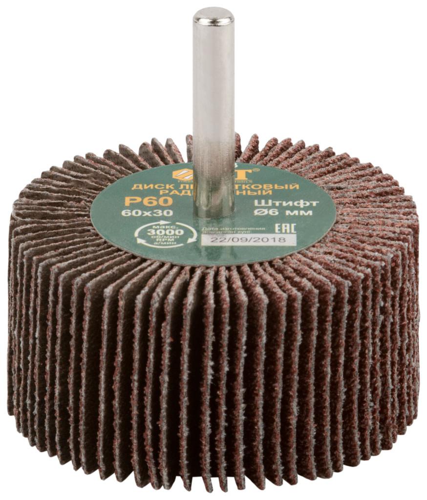 Диск 60х30х6 мм Р 60 лепестковый для дрели радиальный, FIT 39573