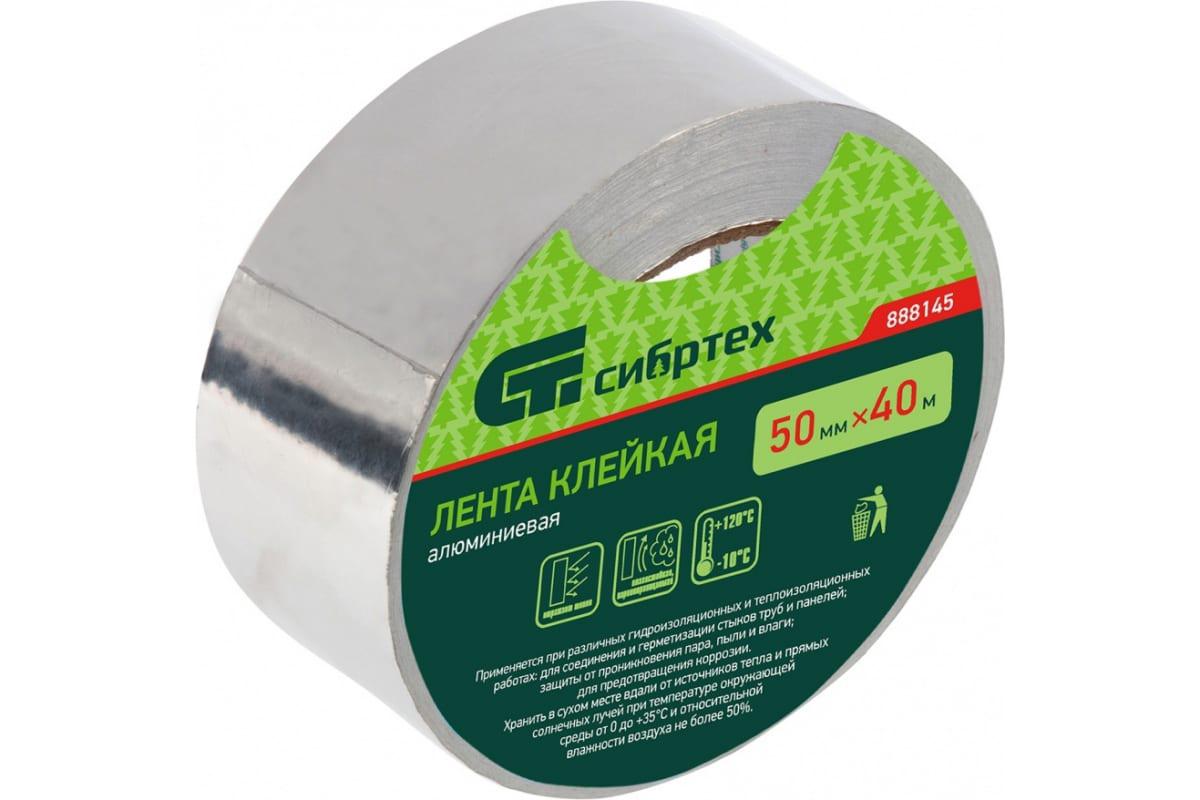 Лента клейкая алюминиевая, 50 мм х 40 м Сибртех 888145