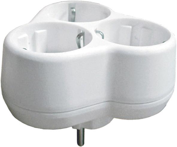 Разветвитель электрический "universal", 3 гнезда, с заземлением, 16А 250 В, круглый, белый 83319