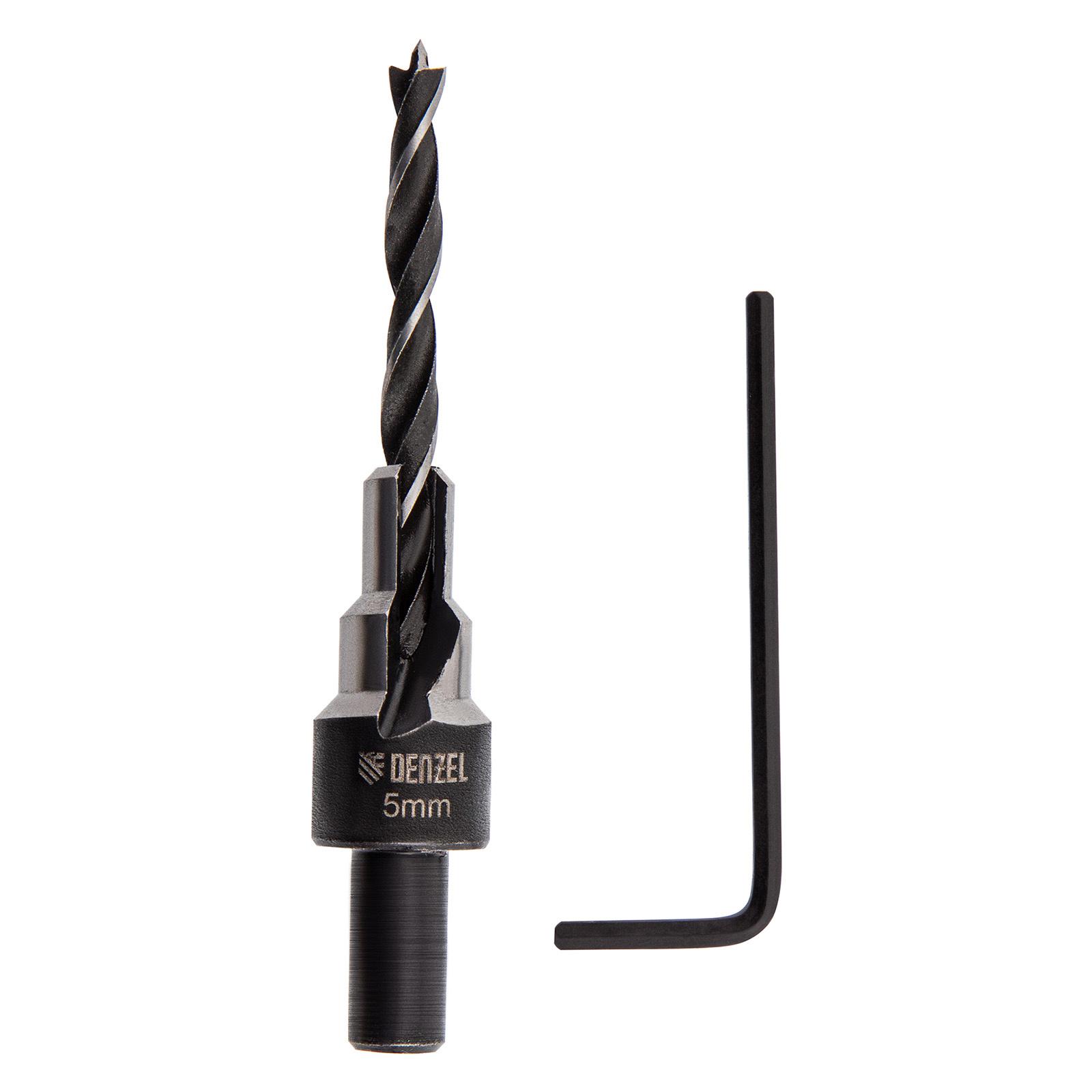 Сверло 5мм с зенкером 9,5мм для мебельных стяжек 7х50 Denzel 704205